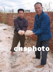 據(jù)了解,遂溪縣的江洪鎮(zhèn)和河頭鎮(zhèn)也同時遭受了這一重災。村民說,最大的一塊冰雹50多公斤,直徑達40厘米。受災地面堆積冰層約20厘米厚。