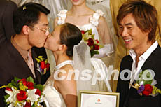 香港旅游發展局十二月二十日在“香港繽紛冬日節”,歌星任賢齊為來自中國華東及華南地區的七十五對有情人證婚。錢興強 攝