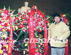正在解放軍軍事科學院攻讀博士學位的毛澤東的孫子毛新宇,代表父母到北京毛主席紀念堂敬獻花籃。