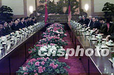 國務(wù)院總理朱镕基二十九日在北京與德國總理施羅德舉行會談。作者:滿會喬