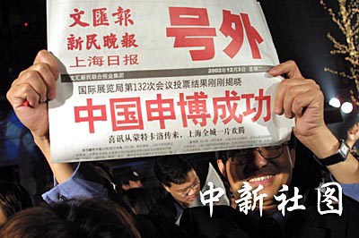 圖:中國上海獲得2010年世界博覽會主辦權