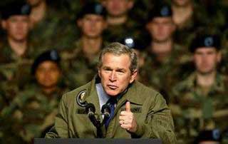 身穿綠色軍用夾克的布什對四千多名軍人及他們的家屬發表演說,他語調慷慨激昂:“我們已做好準備!睂σ晾说膽馉幉ⅰ安皇侨フ鞣侨ソ夥拧。
