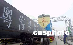首列列車駛上海口碼頭 粵海鐵一號運載試驗成功 (2002-12-16 14:25:29)