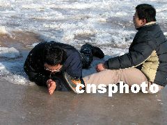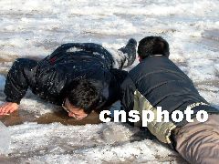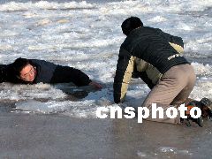 濟南一市民3日到洛口觀賞黃河封河奇觀,結果不甚落入冰窟,幸虧同伴機智向救,才僥幸生還。3日,黃河出現了歷史上少有的大范圍封河現象,許多市民聞訊前來目睹這一奇觀。河務部門提醒市民,雖然黃河已經冰封,但有些河面上冰層較薄,千萬不要在上面行走。