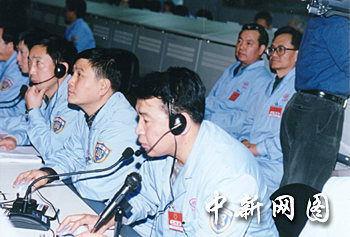 科技人員在北京航天指揮控制中心對“神舟”四號飛船精心實施指揮控制。唐文俊 攝
