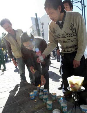 中國(guó)工人悼念以自殺性爆炸中遇難同胞