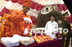 圖:中國“模擬人”進入“神舟”四號飛船 (2003-01-06 09:28:18)