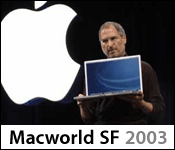 在主題演講中喬布斯首先介紹了Mac OS X和直銷店“Apple Store”的最新情況。與去年相比,使用Mac OS X的用戶約增加了3倍,達(dá)到500萬人。喬布斯宣布“由Mac OS 9向OS X的過渡已經(jīng)基本結(jié)束”。2003年估計(jì)新增用戶將達(dá)900萬~1000萬人。而直銷店“Apple Store”的情況也在穩(wěn)步發(fā)展,2002年10~12月期間銷售額達(dá)到了1億4800萬美元。去年12月有140萬人訪問了直銷店,其中半數(shù)是由Windows轉(zhuǎn)向Mac的用戶。