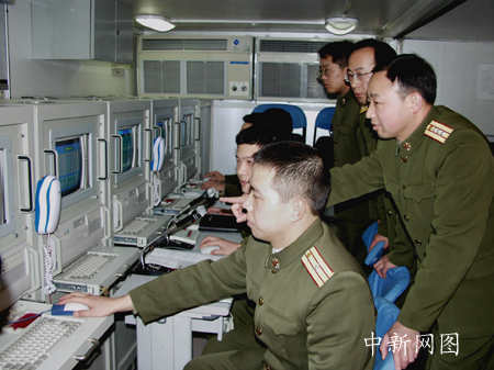 2003年1月4日,著陸場科研人員在精控設備。孫陽 攝