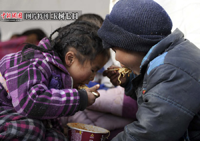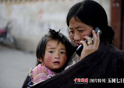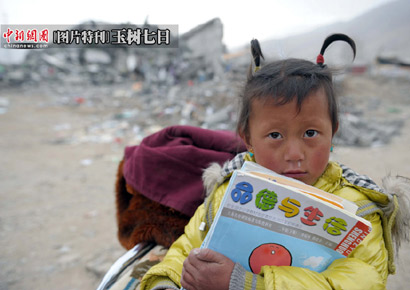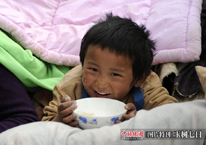青海玉樹體育場地震民眾安置點一個孩子露出笑容