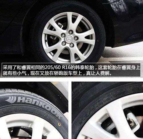 睿翼轎跑車的尾部也與普通版不同,順滑圓潤(rùn)的C柱設(shè)計(jì)比普通版車型看上去更加動(dòng)感,不過(guò)這樣也會(huì)損失一些后排乘客的頭部空間,后備箱采用了掀背式設(shè)計(jì),連同后車窗一起開啟,開口很大,讓消費(fèi)者可以更加從容的取放大件物品,而后備箱開啟按鈕的設(shè)計(jì)則與睿翼沒有區(qū)別。最大的遺憾就是我們?cè)谶@款車型上看到的205/60 R16的韓泰輪胎,在睿翼身上就顯得有些小,搭配到睿翼轎跑上還沒有任何改進(jìn)就有點(diǎn)說(shuō)不過(guò)去了,這樣節(jié)約成本的方式實(shí)在讓人不解。