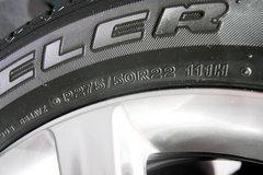 來到車身側面我們更加會覺得QX56的龐大,整體造型圓潤,沒有多余的線條作為修飾,但是反而會讓人感到車身很厚實。無鑰匙進入也毫無懸念的裝配在了QX56身上,兩側翼子板上的散熱孔并非形同虛設,而是告訴我們它裝載了一臺V8 5.6升汽油發動機。其次英菲尼迪慣用的大尺寸輪轂同樣被裝到了這款新車上,22寸9幅造型的鋁合金輪轂使我不得不說很有氣勢,與之搭配的是普利司通275\50 R22輪胎,抓地力應該相當不錯。