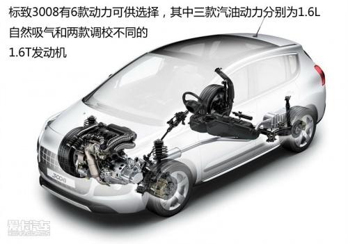 標致3008有6款動力可供選擇,包括三款柴油動力和三款汽油動力,首先來說與國內消費者關系最密切的汽油發動機,包括一臺1.6升VTi發動機,最大功率118馬力,扭矩160Nm;另一臺1.6升THP渦輪增壓發動機最大功率148馬力,扭矩374Nm,另一臺高功率的1.6升THP渦輪增壓發動機最大功率154馬力,扭矩374Nm。