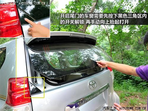 少了懸掛式備胎的尾門輕松了許多,不過這也讓車尾少了越野車的那種野性。左側開啟的尾門沒有改變,這種方式顯然更適合靠左行車的國家。普拉多自動豪華版帶有倒車影像系統,在倒車時可以將拍到的畫面直接顯示在中控的液晶屏上。車尾的玻璃窗可以通過按鍵開啟,這也讓普拉多增加了很多新的用途。