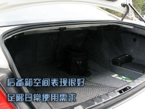 測試者座椅調整合適以后,正常坐姿時頭部有一個拳位余量,腿部活動自由,沒有特別拘束的感覺;后排空間表現良可,測試者正常坐姿下,腿部空間表現很好,有兩個拳位余量,頭部表現一般,有兩指空間,測試者稍有壓迫感。(測試者身高178CM)