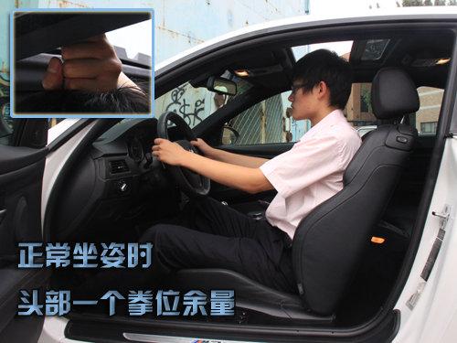 M3基于3系轎跑版打造,車身尺寸方面在原有的基礎上做出了更加符合跑車個性的處理。車三圍是4615mm*1804mm*1424mm,軸距為2761mm,整個尺寸都要比普通版進口3系大一號,起初因為兩門設計產生的對空間的擔心有所動搖,測試者178CM。