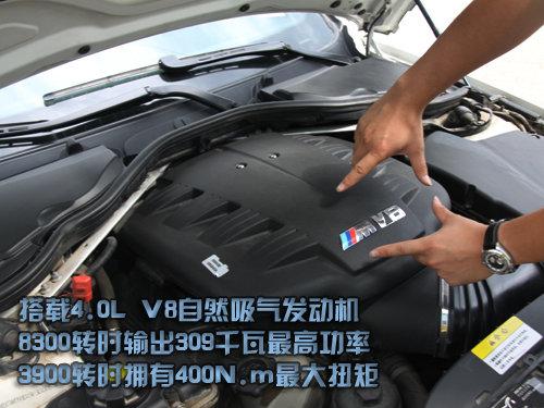 看完了外觀和內飾,M3透露出來的“偽”氣質似乎比較隱蔽,影影綽綽。現在咱們看看動力的部分。M3搭載4.0L V8自然吸氣發動機,應用Valvetronic (電子氣門技術)、DME數字式電子伺控系統、雙凸輪軸可變氣門正時控制系統 (Bi-VANOS)等電子控制技術,8300轉時輸出309千瓦最高功率,3900轉時擁有400N.m最大扭矩。爆裂的孤狼性格此刻終于暴露了。