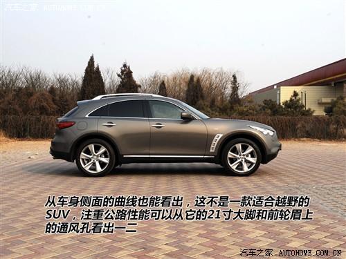 英菲尼迪作為日系品牌中為數不多具有突出個性的品牌之一,近幾年已經漸漸被越來越多的人所熟悉,這個日產旗下的高端品牌對豪華有著自己獨到的理解,運動性是全系車型的特點,FX就是這樣一款具備了個性、運動與豪華相結合的SUV。