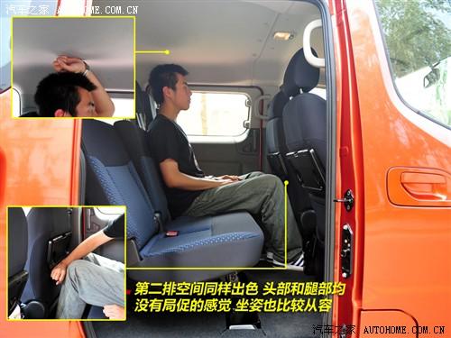 本車的體驗者身高為188cm,但坐在NV200的前兩排頭部仍然有一拳的余量,車身較高確實是廂式車的一大優點。而且和之前介紹的兩款車型不同,NV200的第三排座椅可以乘坐一名成年男性,雖然也不寬裕但可以進行短途的乘坐。