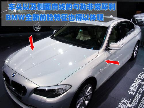 華晨寶馬新一代5系Li轎車擁有修長的發(fā)動機(jī)蓋、更短的前后懸掛,這使其看上去與BMW旗下的其它跑車一樣擁有出色的車身比例。雖然加長了軸距以及近似雙門轎跑車的圓潤流線型車頂線條,但是這些也確保了全新BMW 5系轎車動態(tài)比例的典型BMW風(fēng)格元素,并強(qiáng)調(diào)了車身側(cè)面的動感造型。