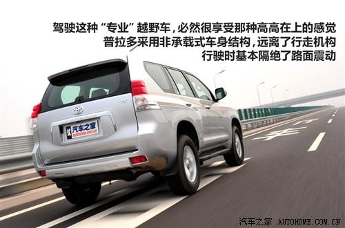 駕駛這種“專業”越野車,必然很享受那種高高在上的感覺,普拉多采用非承載式車身結構,由于遠離了行走機構,行駛時基本隔絕了路面震動,像是漂浮在空氣中。這樣一來在舒適性方面幾乎可給滿分。