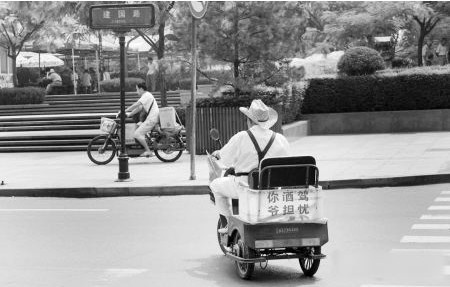 “別摸我”、“愛我,就離我遠(yuǎn)點(diǎn)”……搞笑的車貼經(jīng)常見到,這都是年輕人的“專利”。可是,西安一位82歲的老大爺也是潮人,他在自己的三輪車上也貼上了標(biāo)語:你酒駕,爺擔(dān)憂。網(wǎng)友拍攝的圖片迅速在各大論壇流傳,老爺子被稱為“擔(dān)憂爺”。