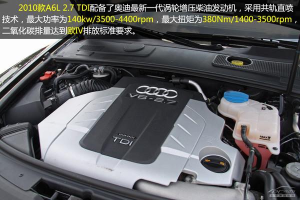 第一個上場的是一汽奧迪2010款A6L 2.7TDI車型。此車型代表了目前奧迪最先進的柴油發動機技術,而且是國內首款裝備柴油發動機的高檔車型,可以說是業內第一個吃螃蟹的,因此編輯選了這款作為柴油車型的代表。