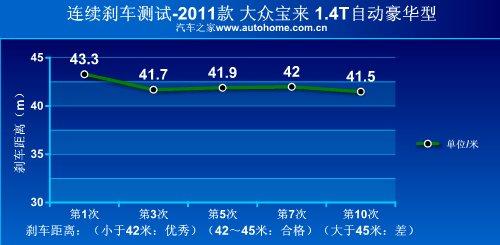 大眾的剎車系統一直保持著不錯的傳統,成績不算特別突出,表現會比較穩定,寶來1.4T的剎車表現也是如此,42.1米的成績不算優異,但也令人滿意。