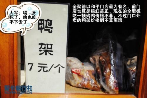 前門大街最著名的老北京小吃,應該就要算是“全聚德”了,對于這家中華著名老字號,大家早已聞名已久。不過考慮到自己肚子的承受能力,最后還是放棄了在全聚德大吃一頓的打算。口水全聚德首創的掛爐烤鴨已久的瘦劉有些怏怏,不過這點遺憾很快就被“都一處”燒麥的誘惑打消的無影無蹤了。