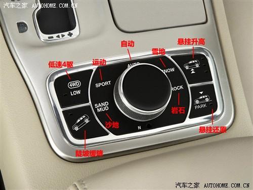 新款大切外觀和內飾方面都有城市化的趨勢,但是本質依然未改,全時四驅系統和Quadra-Lift?底盤升降系統共同提供了不同的駕駛模式,包括自動、運動、沙地、雪地、巖石等路況的選擇,在不同模式下懸掛和油門會做出不同的響應;另外可調空氣懸掛預設了5個高度模式,在最大高度時可獲得34.3°接近角,27.3°離去角和23.1°的通過角,以保證越野時的通過性。在停車時按動“PARK”鍵,懸掛即降至低點,方便人員下車。陡坡緩降也為駕駛者在越野時提供了不小的幫助。