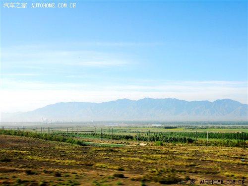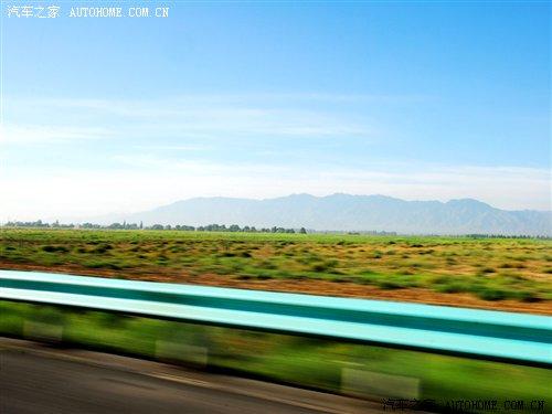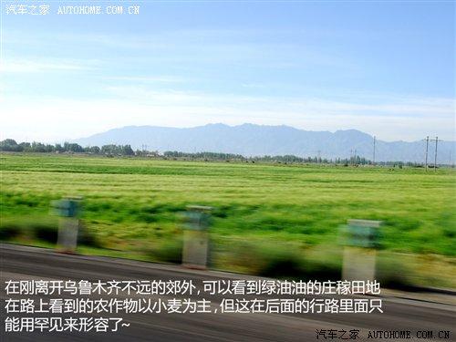 離開高區駛入國道,車窗外出現了不同尋常的景色。景物也隨著我們的前進在不斷地變化。在剛離開烏魯木齊不遠的郊外,可以看到綠油油的莊稼田地,一片片的小麥田地讓人目不睱接。