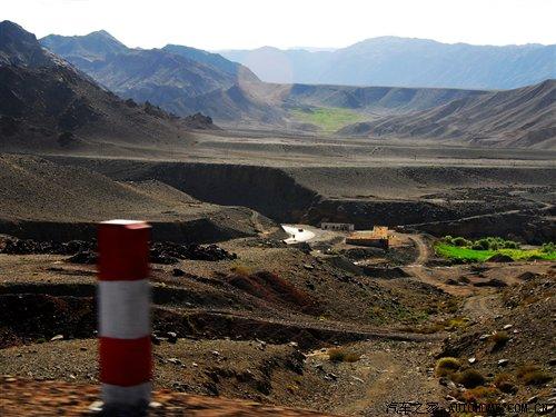 車隊(duì)繼續(xù)前行,市區(qū)離我們?cè)絹?lái)越遠(yuǎn),在后視鏡里面僅剩下一個(gè)小圓點(diǎn)。我們即將進(jìn)入軍馬場(chǎng),也就是山區(qū)道路。由于進(jìn)入山區(qū)后溫度相對(duì)來(lái)說(shuō)比較低,因此這個(gè)時(shí)候添加衣服很有必要。除了添加衣服外,駕駛也得小心翼翼,因?yàn)樯铰范急容^迂回曲折,最主要是數(shù)十噸的運(yùn)貨拖車特別多,在途中我們就遇上了一臺(tái)在下山時(shí)候翻倒在山邊的貨車。