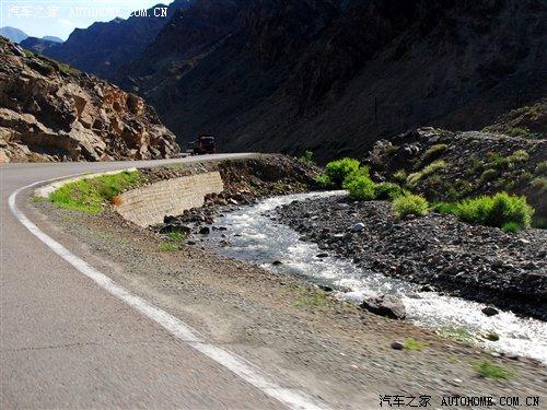 在山路行駛的前段時(shí)間令人十分枯燥,山路兩旁都是光禿禿的巖石山,十分欠缺綠意,干巴巴的!唯一可以吸引眼球的就是山路旁邊的小溪流,據(jù)當(dāng)?shù)剀囍鹘榻B這小溪流的水源自天山,十分冰涼。