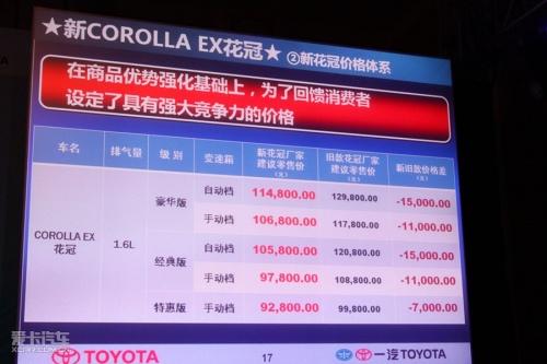改款花冠EX價(jià)格發(fā)布