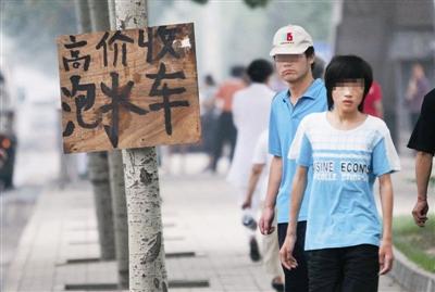 7月13日,在南四環(huán)花鄉(xiāng)橋北側路邊,一個印著“收購泡水車”的牌子引起了記者的注意。守在旁邊的小販告訴記者,他們專門收泡水車,價格好商量。