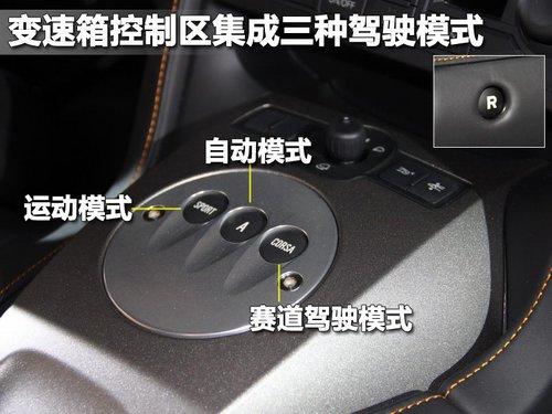 接下來是換擋控制區,配置有運動、普通及CORSA模式,要想獲得極致的駕駛樂趣,當然要選擇CORSA模式,這時電子程序不會在干擾你,不過您要有出色的駕駛技術才行。另外比較特別的是它倒檔開關位于方向盤的左側,孤零零的呆在那。