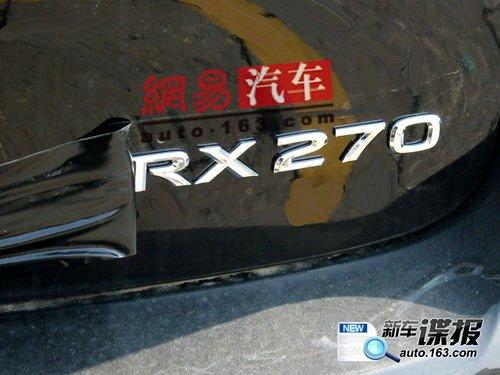 外觀上新車和RX350沒有差別。從命名來看,新車將搭配一臺排量更小的2.7L發動機。從RX系列與豐田漢蘭達出自同一平臺的情況來看,RX270所搭配機型應該就是漢蘭達2.7L之上的IAR-FE直列四缸發動機。最大功率190馬力,最大扭矩達到252Nm。