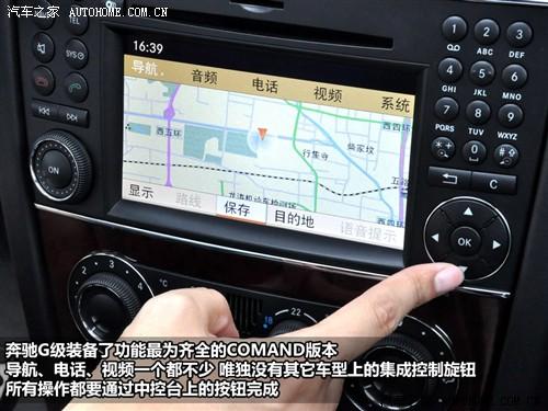 奔馳G級雖然有著30年無大變的外形設計,但內部配置早已今非昔比。這套COMAND人機交互系統同樣出現在其它奔馳車型上,而G級裝備的這套有著相對更齊全的功能。不過比較遺憾的是沒有集成旋鈕,使操作方式略顯繁瑣。