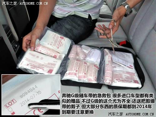 對于經常獨自翻山越嶺的奔馳G級的駕駛者和乘客來說,隨身攜帶基本的野外急救物品是非常有必要的。而奔馳G級早已替主人想到了,各種急救包和繃帶甚至還有一把專業剪繃帶的剪子。只要車主要注意這些東西是有有效期的。
