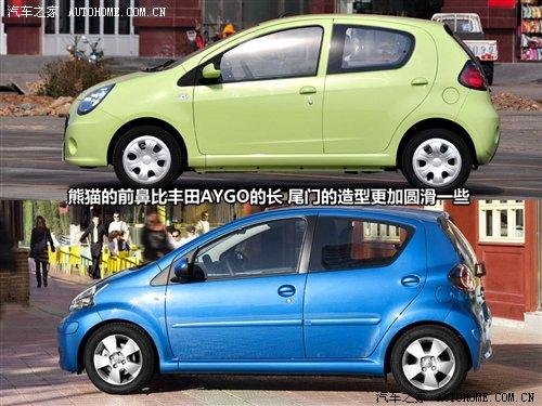 同比亞迪F0一樣,吉利熊貓也是國內微型車領域比較走俏的車型之一,仿生學的設計將熊貓的造型演繹地惟妙惟肖,小巧的車身也使它游走在城市中游刃有余,它的外形同樣取自豐田的AYGO。
