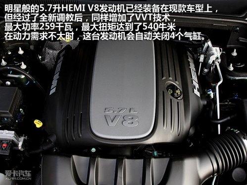 明星般的5.7升HEMI V8發動機已經裝備在現款車型上,但經過了全新調教后,同樣增加了VVT技術,最大功率259千瓦,最大扭矩達到了540牛米,在動力需求不大時,這臺發動機會自動關閉4個氣缸,從一臺8缸發動機變為4缸發動機,從而節省更多的燃料。兩款5速自動變速器分別對應兩臺強大的發動機。