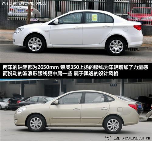 巧合的是兩車的軸距同為2650mm,在車身長度落后于悅動的情況下,榮威350在軸距上追了上來。兩車的側面線條都很好的反映了各自車型的設計特點,榮威350筆直的腰線高高揚起,為車身增添了不少動感,而悅動的波浪形腰線則看起來更飄逸一些。