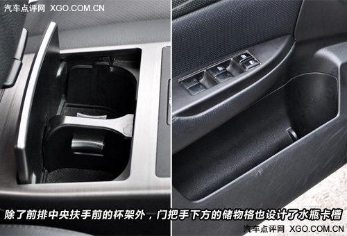 前排空間中,除了當把后面的兩個杯架以外,門把手下方的儲物格也特別設計了放置水瓶的卡槽,可以將水瓶穩固的放置其中,中央扶手的儲物格分上下兩層,上層稍淺,可放小物件,下層略深則可以容納更多的物品。