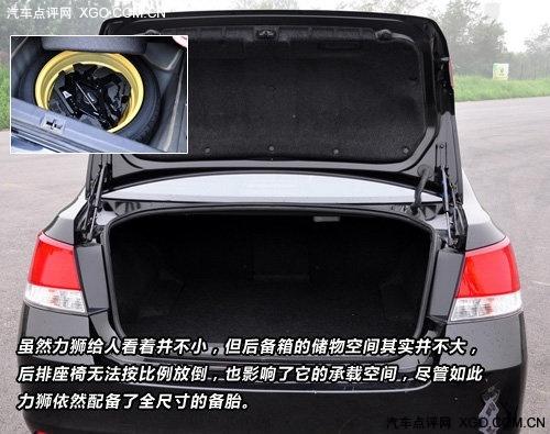 車內有有一處超大的眼鏡存放處,這么大的眼鏡盒還是真的很少見,不僅能放下普通眼鏡,按尺寸看,連雷鵬的大墨鏡放在里面也應該沒有什么問題,內置絨布,以防止鏡面與內壁的摩擦。雖然眼鏡盒超大,可該大的地方卻并不如人所愿,在外觀上和內飾上,力獅看著都不小,但偏偏后備箱的儲物空間卻不大,后排座椅也無法按比例放倒,同樣影響了承載空間。盡管后備廂空間不是那么的大,但力獅依然配備了全尺寸的備胎,如果換成非全尺寸的話,空間應該也會得到些許的提升吧。