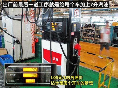 在車輛組裝完畢后,每輛車型將會添加7升汽油。從顯示屏可以看到,在這里每升汽油的價格僅為1.05元,這樣的價格相信一定是每位車主的夢想。