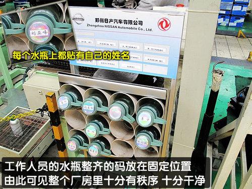 最后說一下,在工廠的角落里整齊碼放著員工自己的水瓶,從上圖我們可以很清楚的看出十分整齊,十分干凈。由此可見鄭州日產的整個廠房里是相當整潔的。