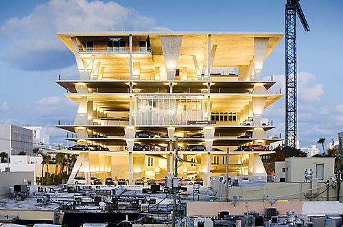 作為行人長廊的補充,這座“雕塑車庫”在一個混凝土-玻璃結構中結合了300個車位的車庫,零售商店和一個頂層海景餐廳。車庫的每一層都利用了自然光線,而且能夠一覽邁阿密優美的天際線。