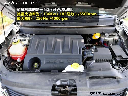 當前在售的酷威只有一款車型, 廠商指導價為29.99萬,它采用排量為2.7升的V6發動機,最大功率為185馬力,對大扭矩為256牛米,推動這款重量超過1.7噸的車型基本夠用,與之搭配的是6速手自一體變速箱。在配置方面,它具有胎壓監測、DVD娛樂系統、分區自動空調等諸多裝備,足夠日常使用,讓人略有擔心的是美國車較高的油耗。
