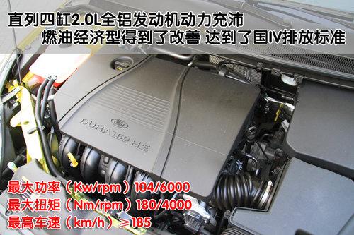 直列橫置4缸 2.0L Duratec-HE DOHC 16V全鋁發動機繼續為福克斯2.0L運動型效力。塑鋼等長進氣歧管/VIS可變進氣系統/單缸獨立順序式點火系統等技術均是這款發動機的亮點。廠方公布的百公里綜合油耗為8.4L/100km。