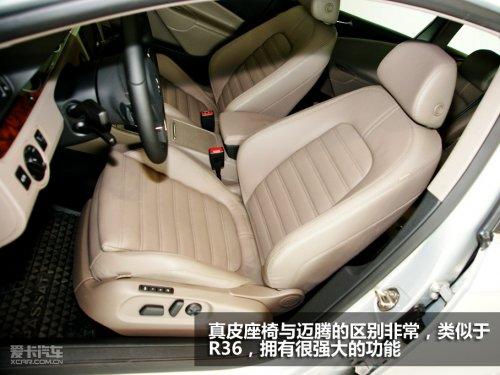 真皮座椅在設計上也與國產邁騰有所不同,采用了與R36相同的造型,無論在包裹性以及乘坐舒適感方面都較邁騰更為優異。真皮打孔座椅功能非常強大,不但有通風和加熱的功能,前排駕駛席還帶有位置記記憶和按摩功能。試想一邊駕駛著一輛休閑旅行車假期外出游玩一邊享受著按摩座椅是一件多么愜意的事情,令眾邁騰車主充滿羨慕嫉妒恨...